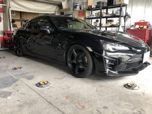 86の車高チョー取り付けとフィットのブレーキパッド交換とキャリパーO/H。